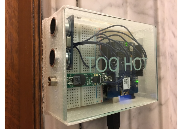 Using a Raspberry Pi, an Arduino, an Android tablet, and RadioShack's waterproof pocket infrared thermometer, the device monitors people's temperatures as they walk by. If it detects a high temperature— indicating illness— the sick worker must put in his or her name. This looks up their home address, which then brings up an Uber Button programmed to take them home, thus avoiding the spread of their illness to others.