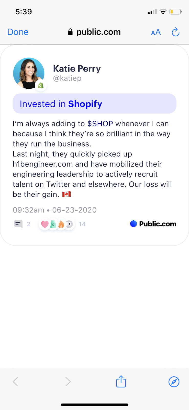 Button sits squarely in the mobile commerce space and is always looking out for innovative mobile tech. Given the current trends - more time spent on phones and social apps, plus a new-founded ability and interest in investing - we were instantly drawn to Public.com. I sat down (virtually) with Katie Perry, VP of Marketing at Public, to learn more.