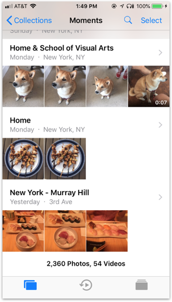 Icons can be eye-catching and fun–just ask that friend of yours who ends every text message with an emoji . Without the appropriate context, however, icons can also be downright confusing. (Imagine that friend's messages, but only the emojis.) With the exception of a handful of highly universal icons, such as the magnifying glass for "search," most icons are not recognizable out of context. Consider the following screenshot of the Photos app on my iPhone (shoutout to our beloved team dog, @rubyrubyroooo):