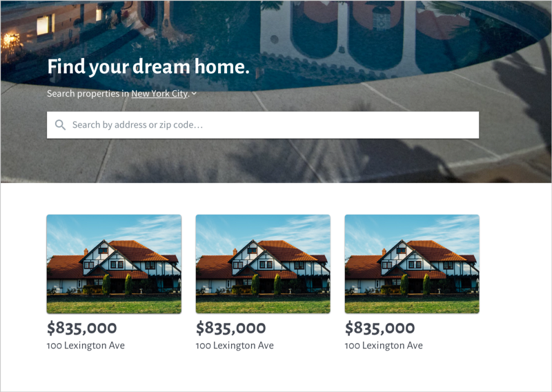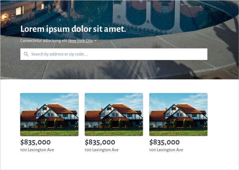You can guess from the imagery that this website has to do with real estate, but with placeholder copy, the call to action is not explicitly obvious. Swap the placeholders for realistic copy, and the target audience and voice become much clearer.