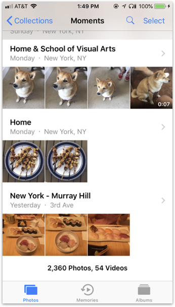 Nope–it means Memories! Yeah, I couldn't have guessed either. That's why the actual Photos app includes labels in the bottom row.