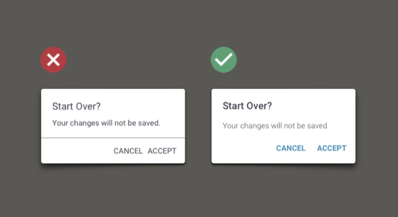 One of the easiest ways to create a confusing interface is a lack of attention to visual hierarchy, the presentation of elements on the screen in a way that clearly illustrates their relative importance and relationship to one another. It's easy to write off styling as unnecessary polish, but differentiating the elements on your page serves an important role in the user experience. Consider the following modals: