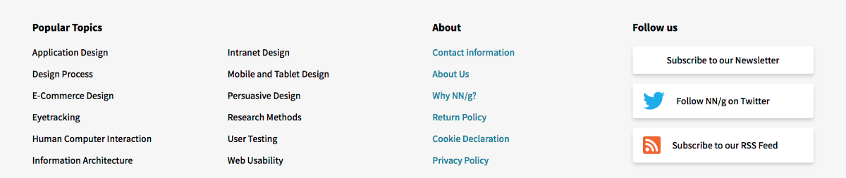 Since it's styled differently from the other links in the footer, my best guess was that a modal would appear. Nope. It was a regular old link, triggering navigation to another page. Experiences like these disorient users, making them that much more likely to abandon your product.