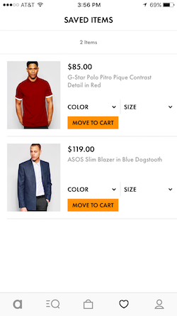 This allows you to personalize recommendations for your users, save their payment credentials for repeat purchases, or even allow them to customize their shopping experience. Asos, for example, allows users to save items while browsing, creating a wishlist easily accessible from a made-for-native navigation bar at the bottom of the app.