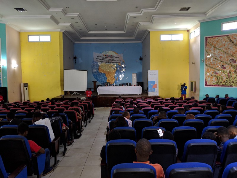 Inside the Malick Condé cultural center, the main hall seats up to 1,500 participants. The DevFest had over 300 attendees, and we hope future events can fill the entire room!