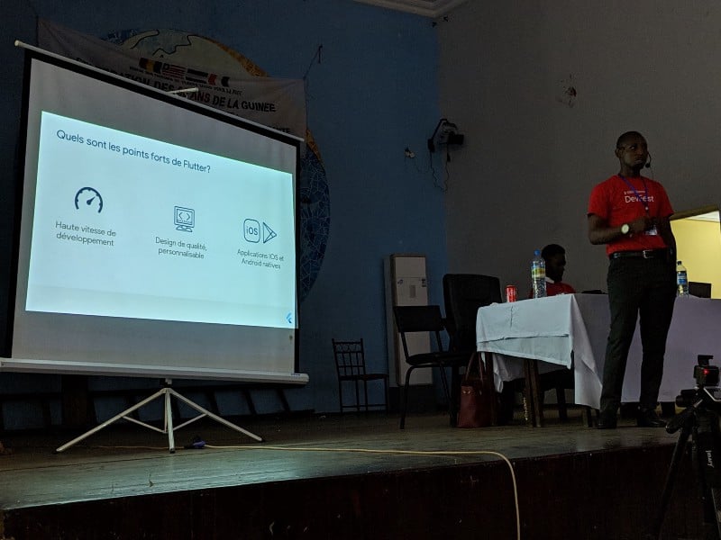 Following the group photo, Hamidou Bah, GDG Conakry co-organizer, led a code lab where he walked participants through building their first Android and iOS application using Flutter.