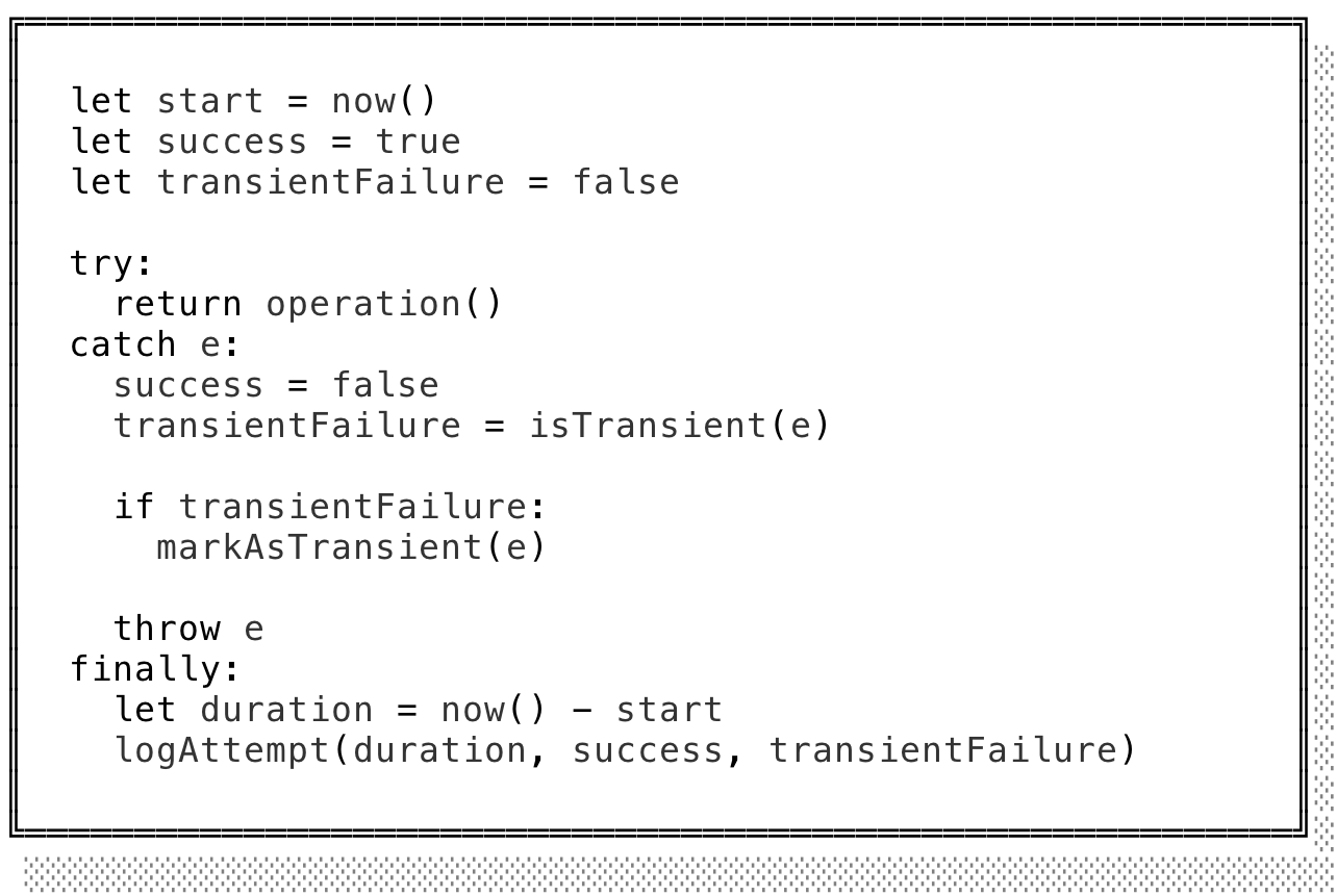Somewhere, somehow, we'll have to make a determination when a failure occurs: was it transient or not? In our programming environment of choice, that might look something like this:
