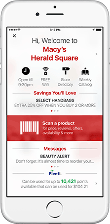Macy's announced plans to add mobile checkout to all stores by the end of 2018, via their mobile app, in an effort to make checkout out less of a hassle. They've been piloting this concept in New Jersey, where shoppers are able to scan barcodes with their phones as they pick up and are ready to purchase merchandise. Bringing in more convenience, discounts and rewards are automatically applied for loyalty members.
